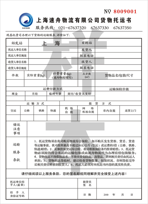 2、整潔清晰地托運(yùn)書,將幫助我們能以更快捷的反饋速遞服務(wù)于您和您的客戶